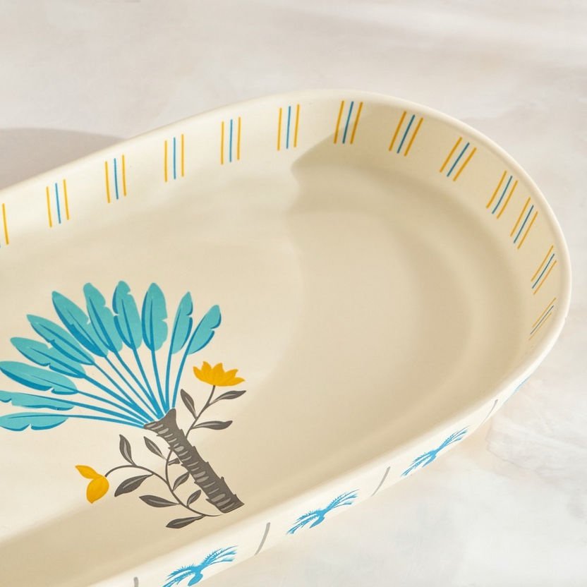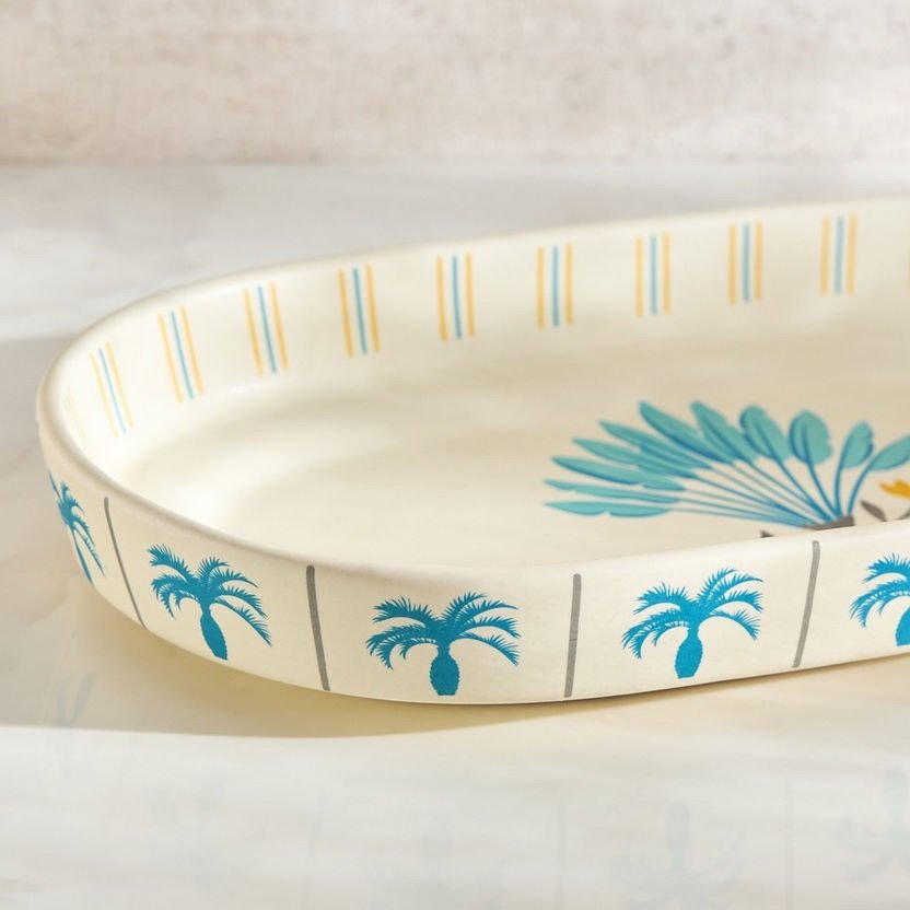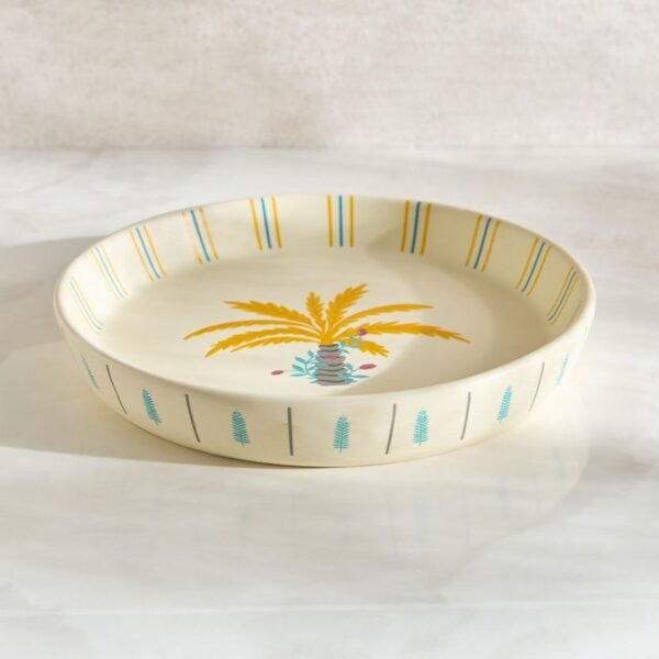 عززي مستوى تقديم أطعمتكِ مع صحن التقديم الحجري الأنيق هذا، المصمم بنقش نخلة ساحر. صُنع من الخزف الحجري المتين