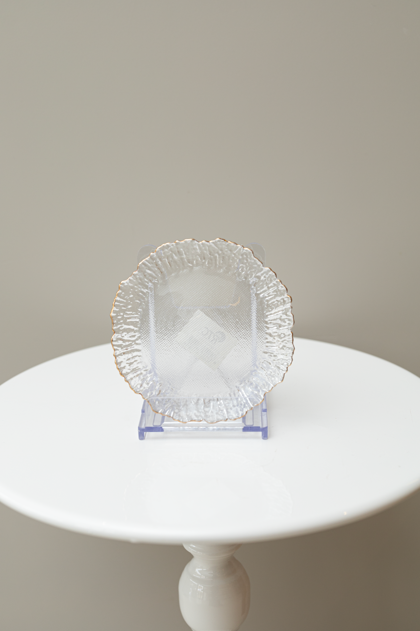 صحن تقديم زجاج بنقشة مزخرفة حجم صغير بمقاس14 سم – حافة ذهبية