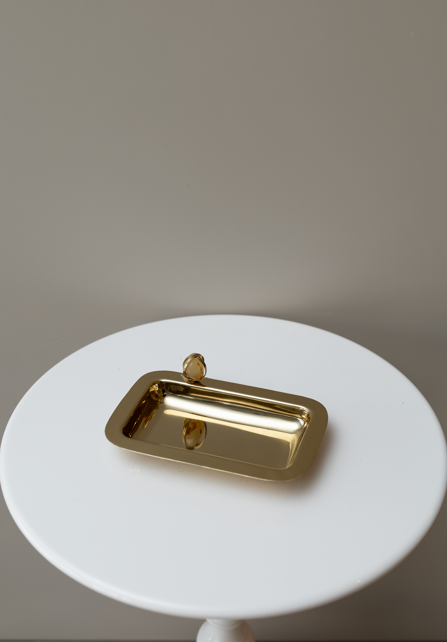 صحن تقديم مستطيل عنبر – ذهبي – حجم صغير