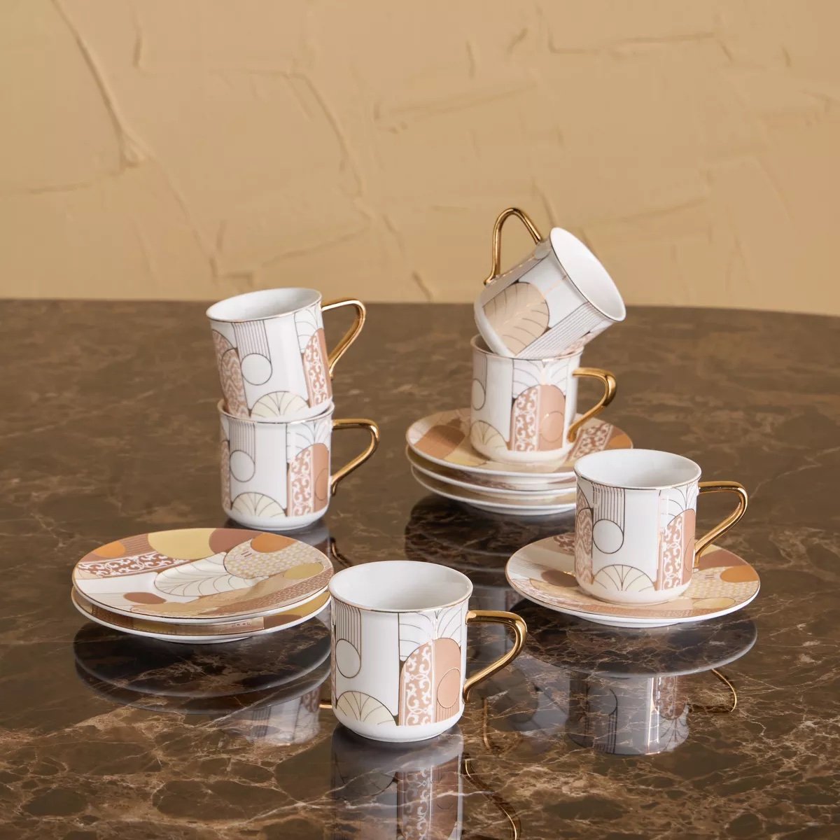 طقم أكواب كابتشينو وصحن من الخزف الصيني الجديد 6قطع – تمارا – 200 مل