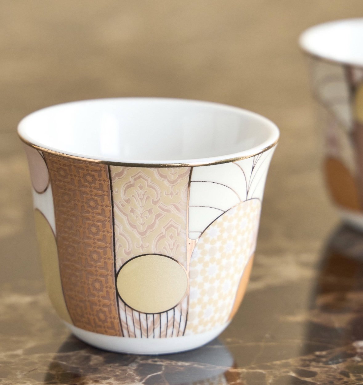 طقم فناجين قهوة مزين بالخط الكوفي