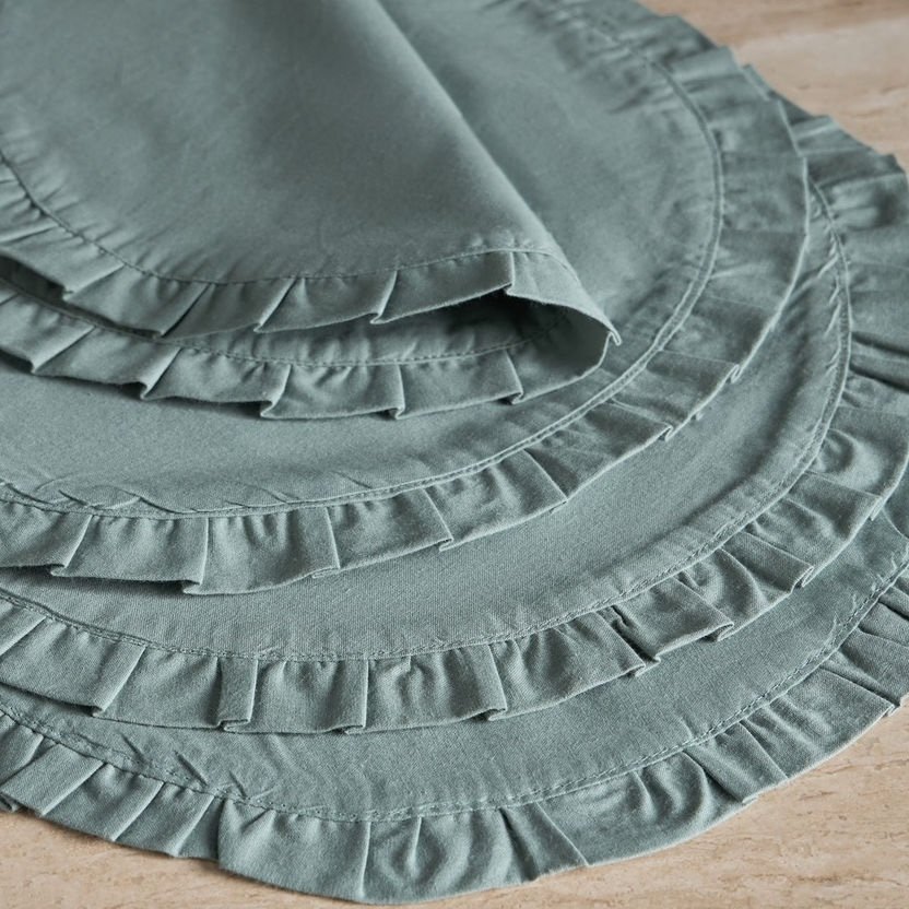 ارتقِ بتجربة طعامك مع هذه المجموعة الفاخرة من أربع مفارش دائرية، مزينة بحواف كشكش