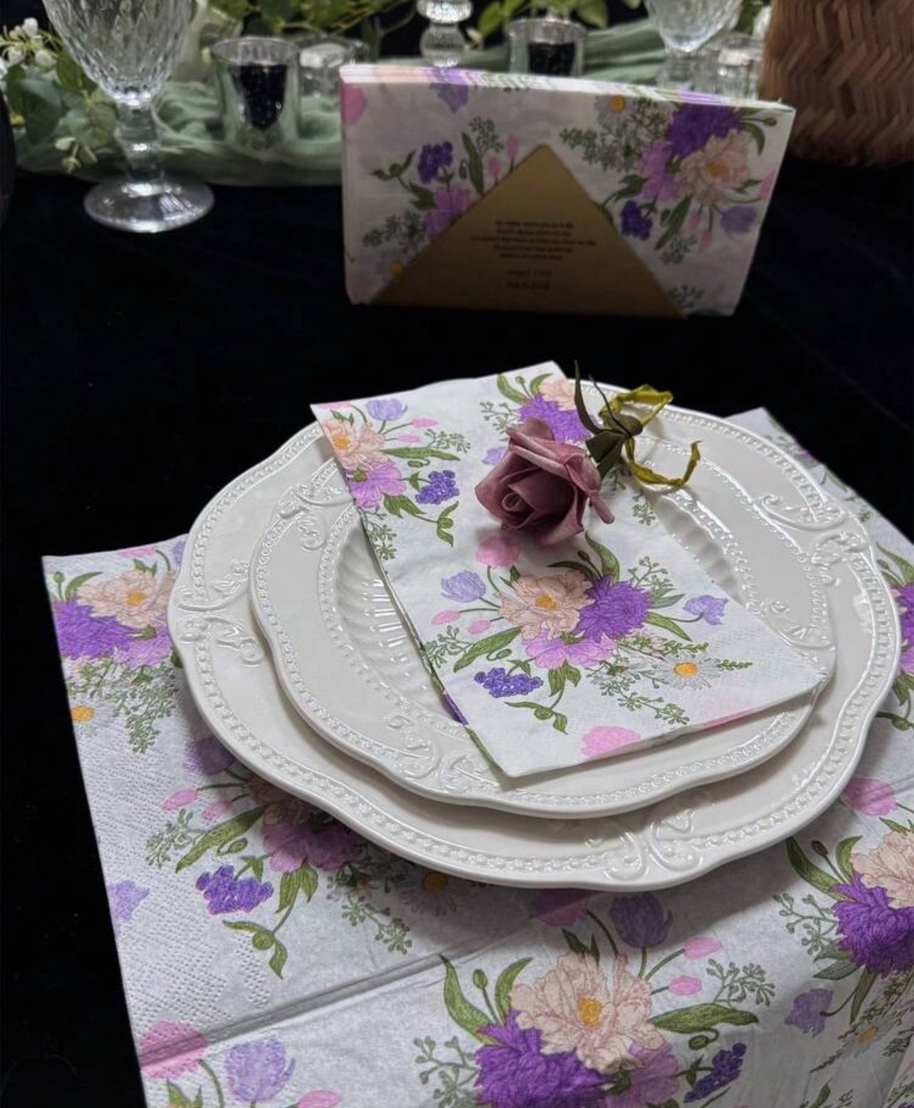 طقم مناديل 20 قطعه ب ازهار بنفسجيه