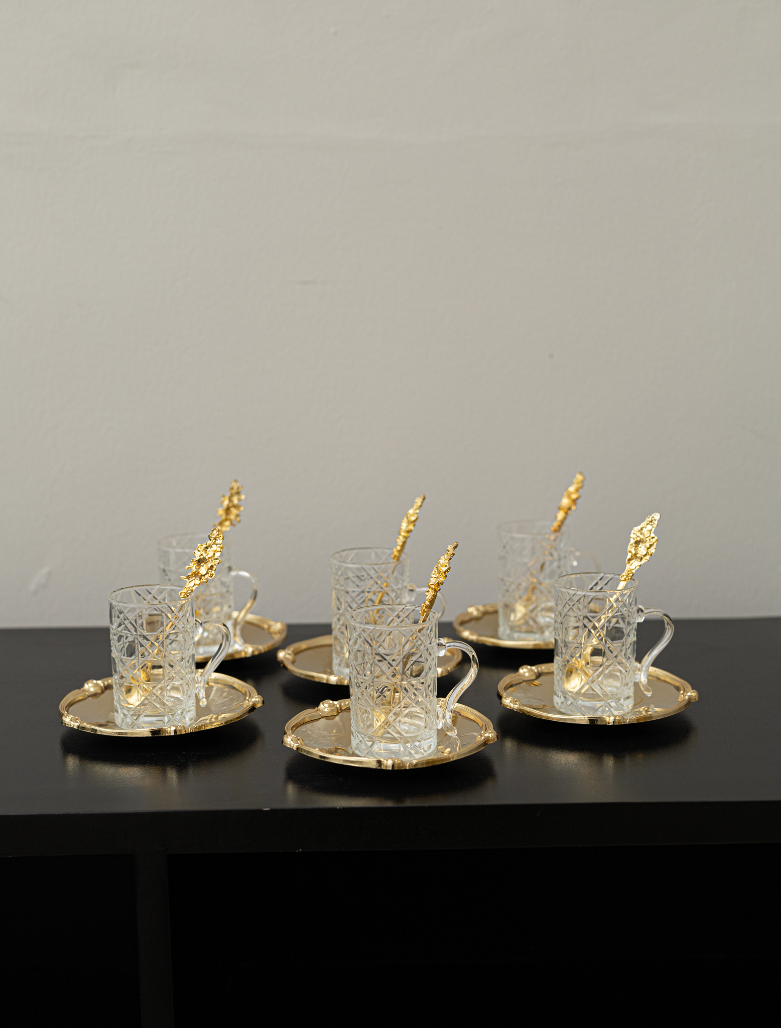 طقم 6 شاي بقاعدة ذهبية