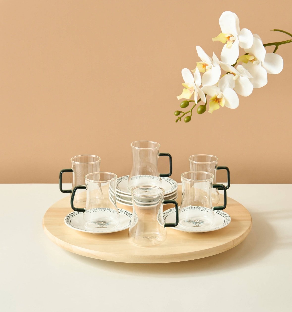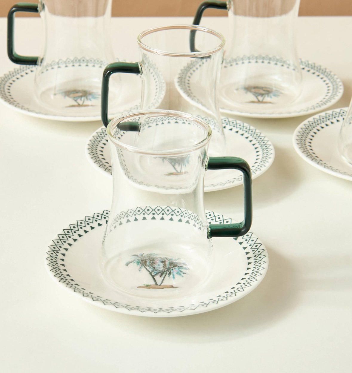 طقم 6 كاسات شاي بتصميم النخيل
