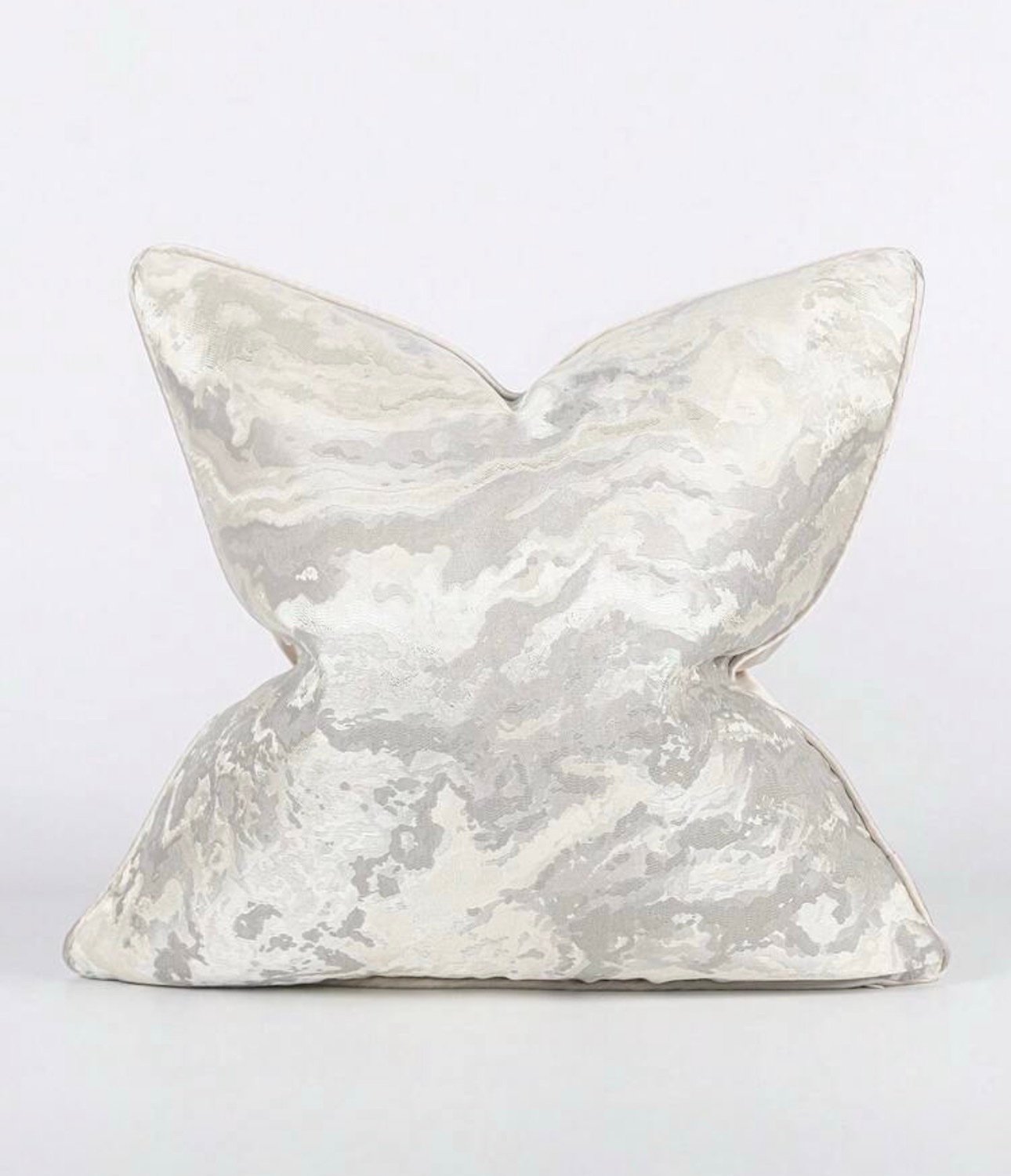 غطاء وسادة مربع من البوليستر الجاكار ذو نمط هندسي ابيض ذهبي – 45*45