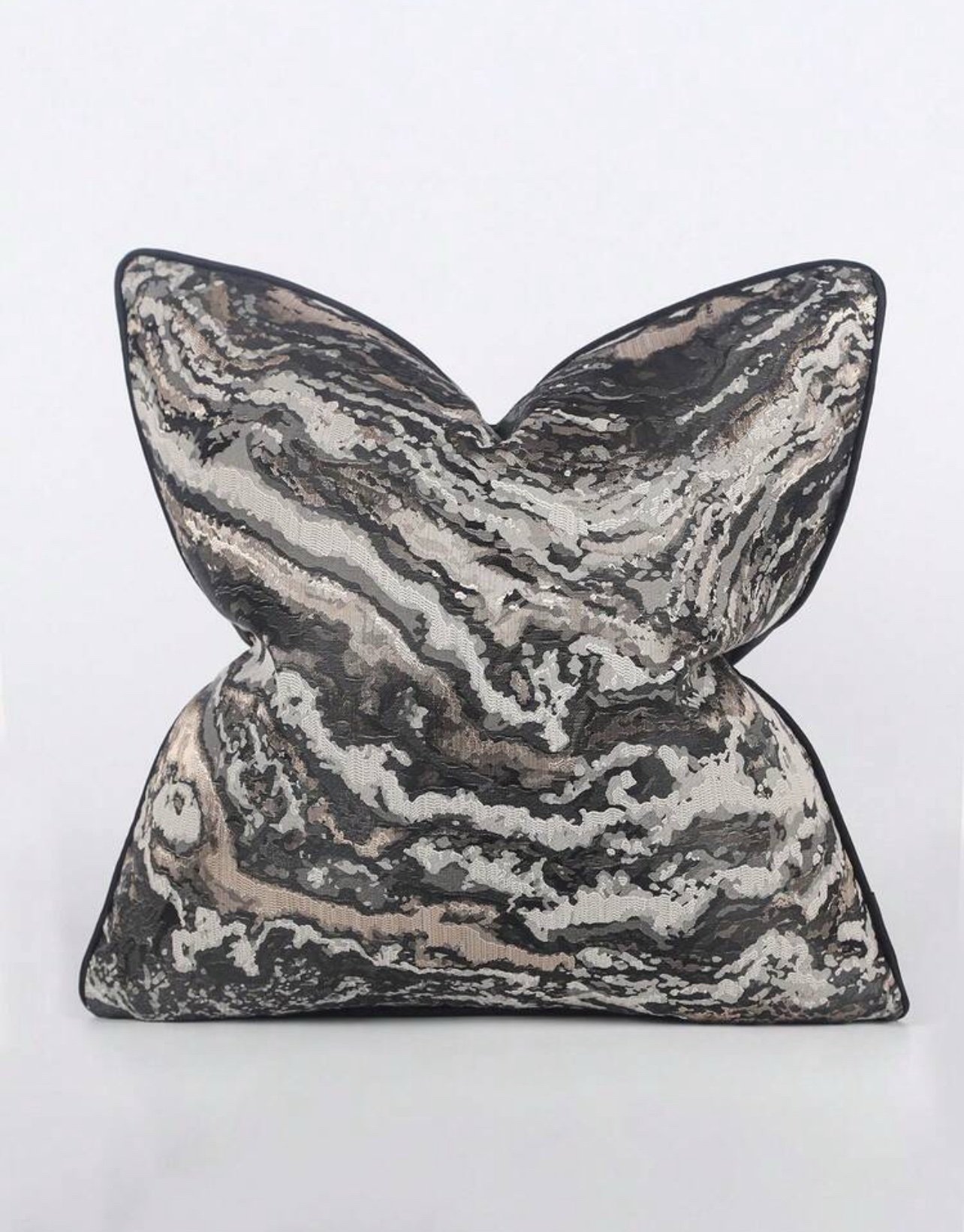 غطاء وسادة مربع من البوليستر الجاكار ذو نمط هندسي أبيض وذهبي وأسود / 45*45