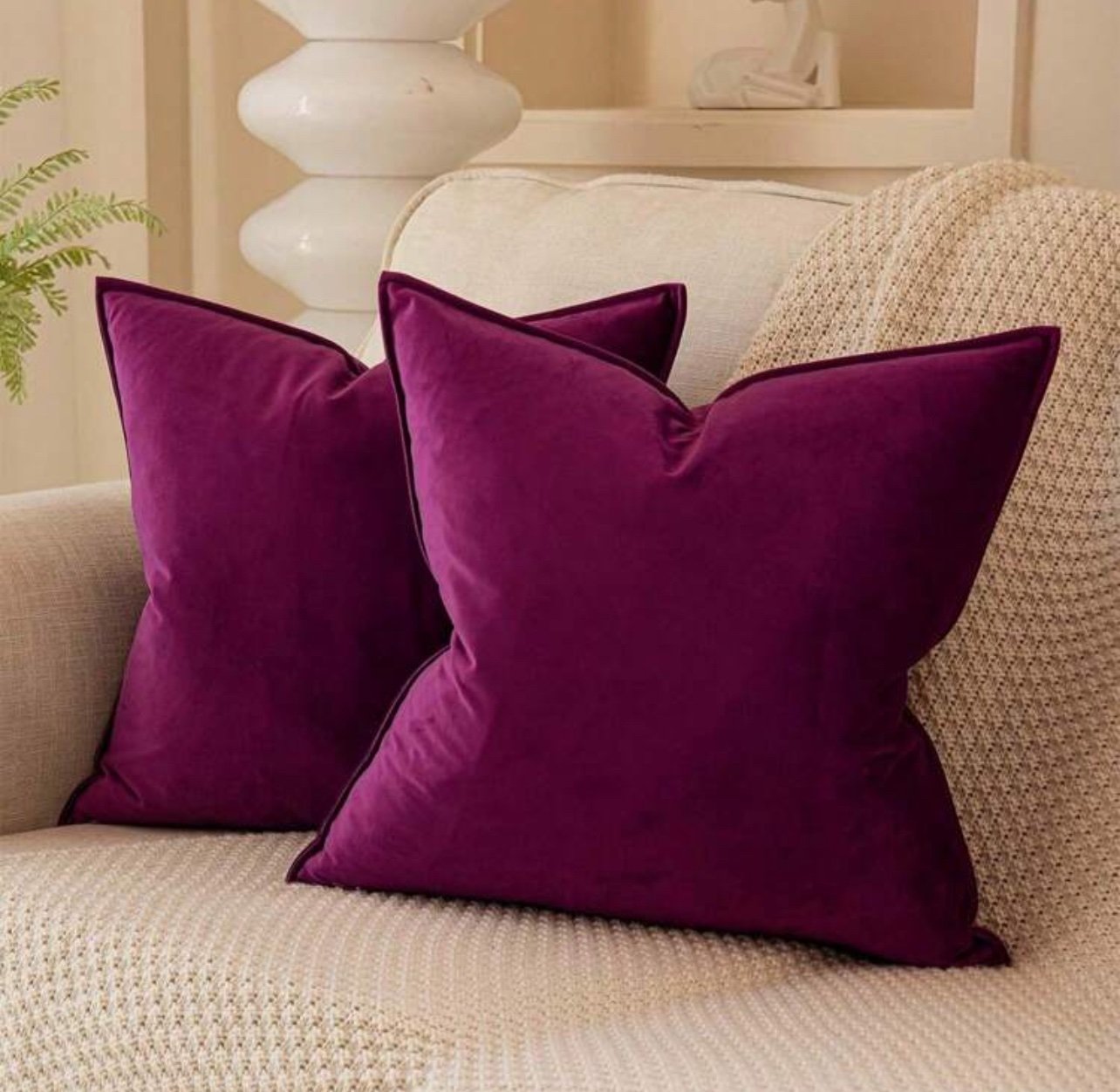 غطاء وسادة مريح بحافة مخملية – اللون بنفسجي – مقاس 40*40