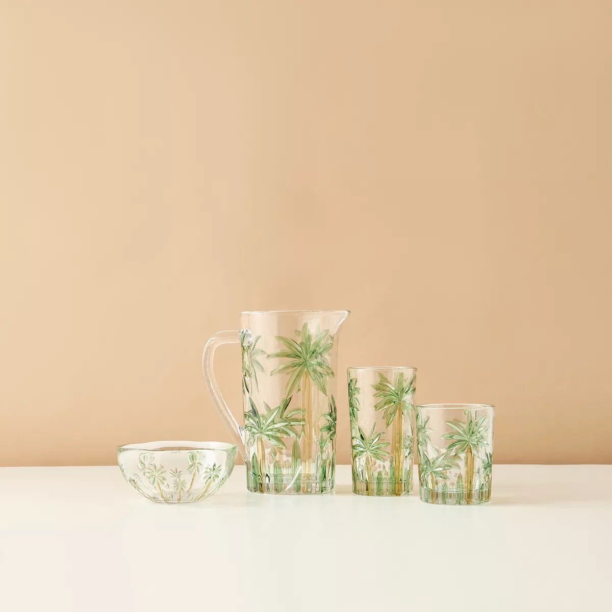 إبريق زجاجي بنقش النخيل