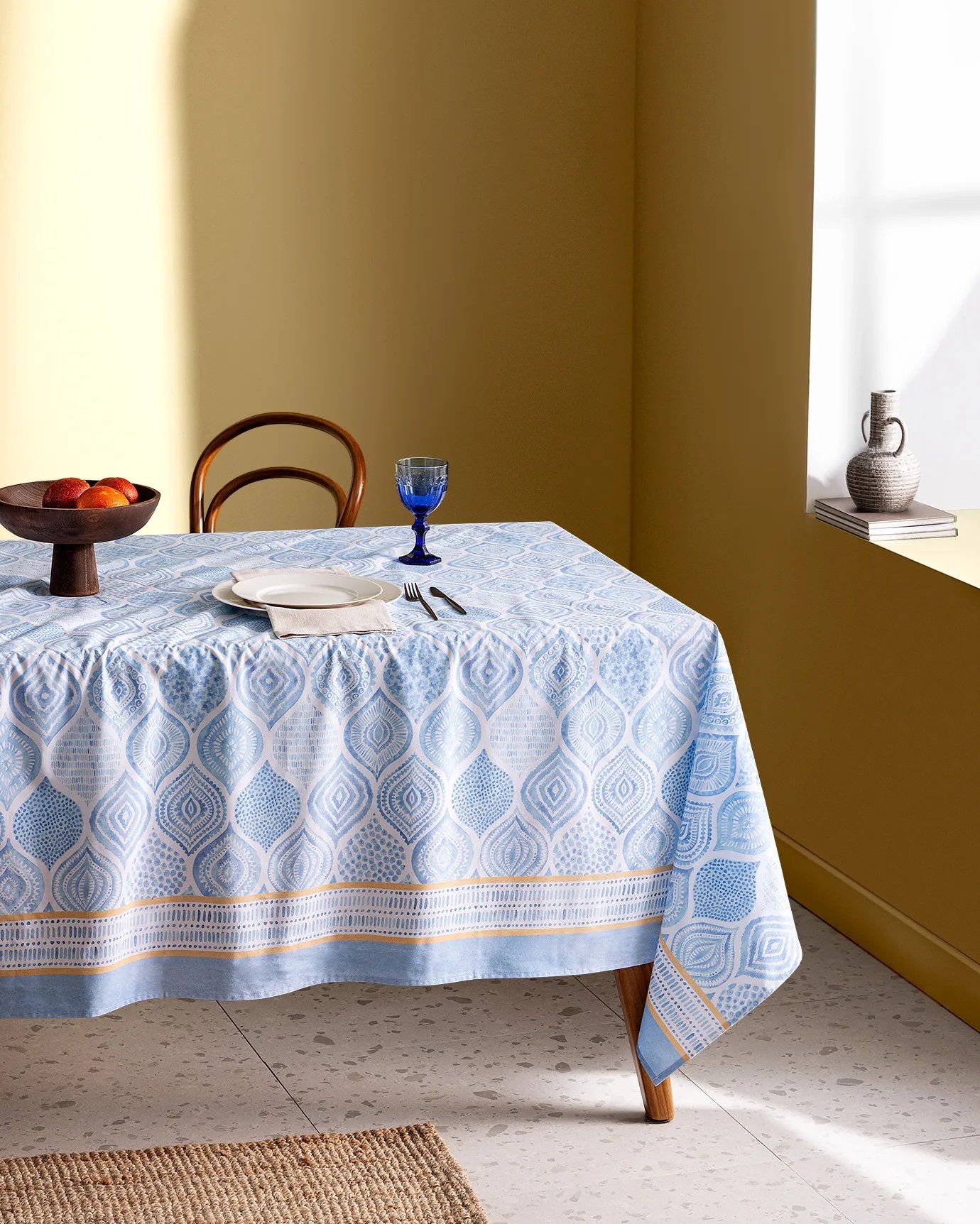 مفرش طاولة من قماش بولي قطن Wanzele – أزرق – 160 × 200 سم