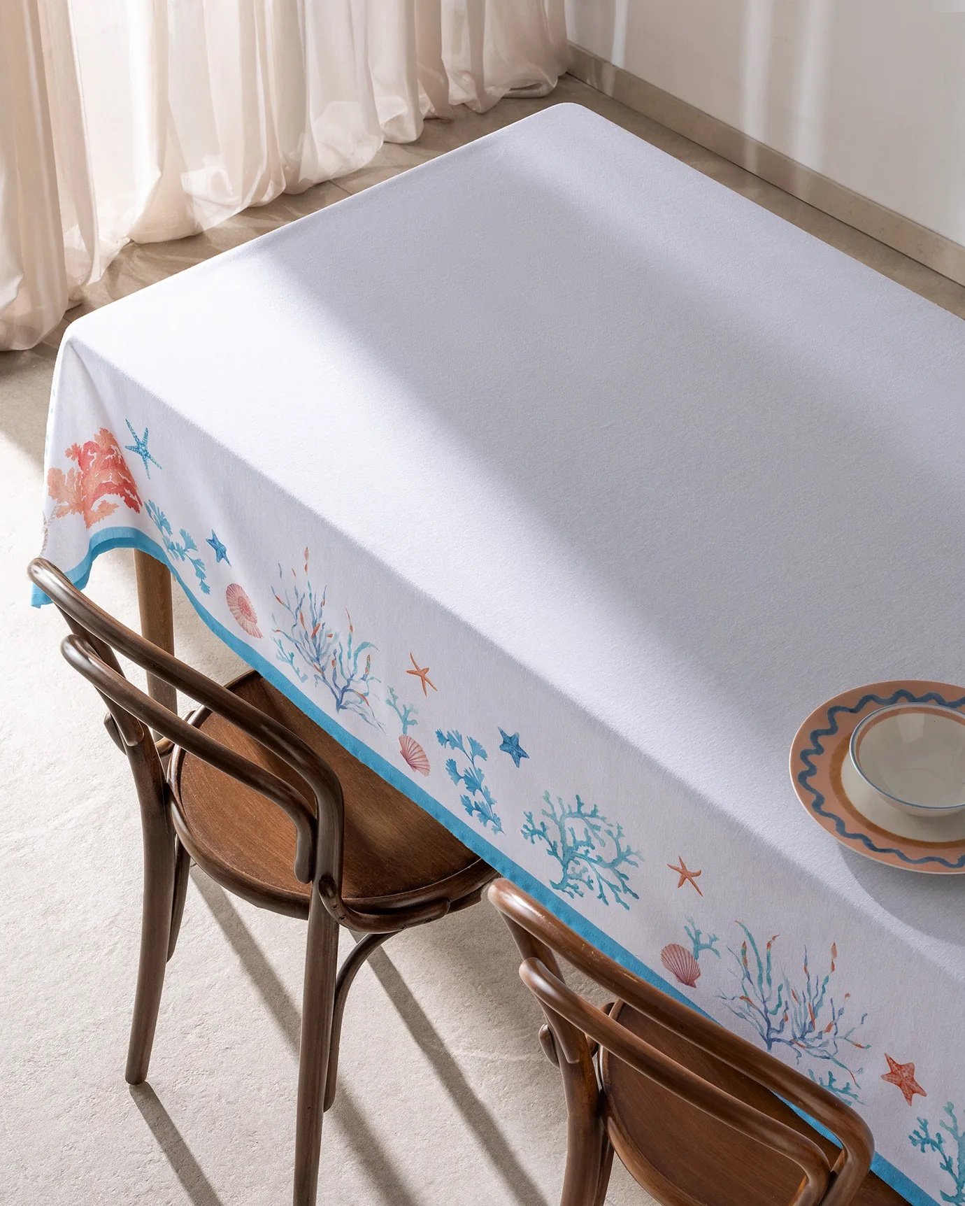 مفرش طاولة Fauve من قماش بولي قطن – أزرق فاتح / برتقالي – المقاس 150 × 250 سم