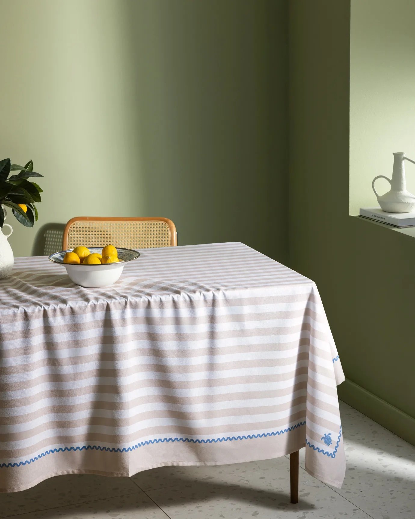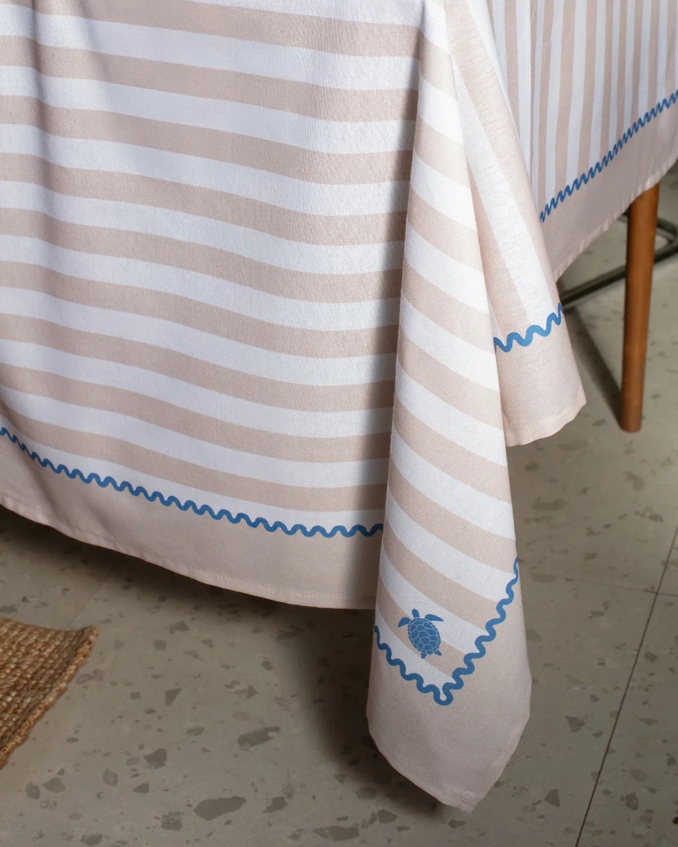 مفرش طاولة Louve من قماش بولي قطن – بيج / أبيض – المقاس 150 × 200 سم