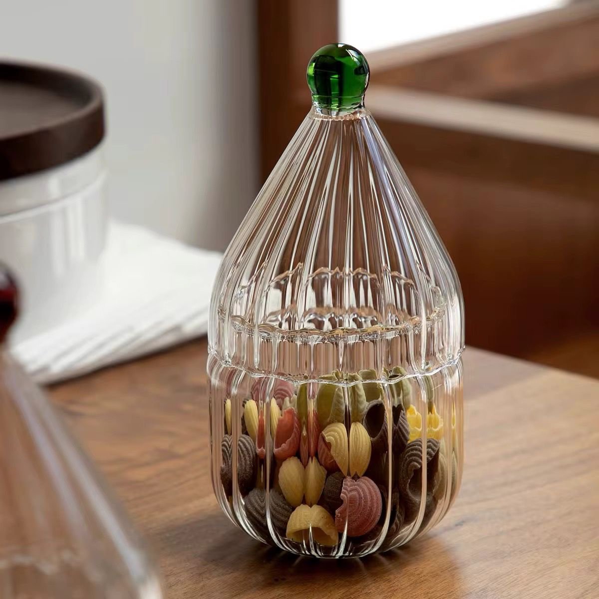 وعاء زجاجي بقبة سوداء لحفظ السكريات او التمور