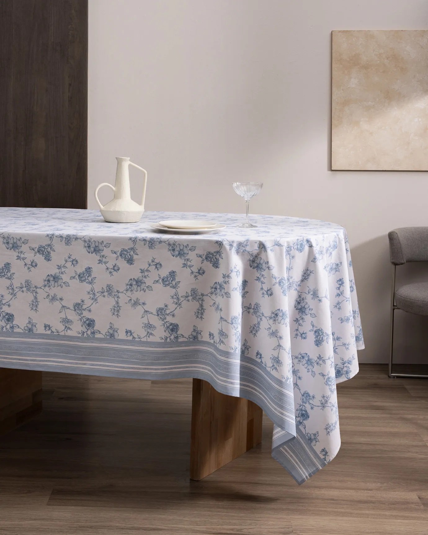 ️ مفرش طاولة قطني Aurel – لون أزرق – مقاس 250×160 سم