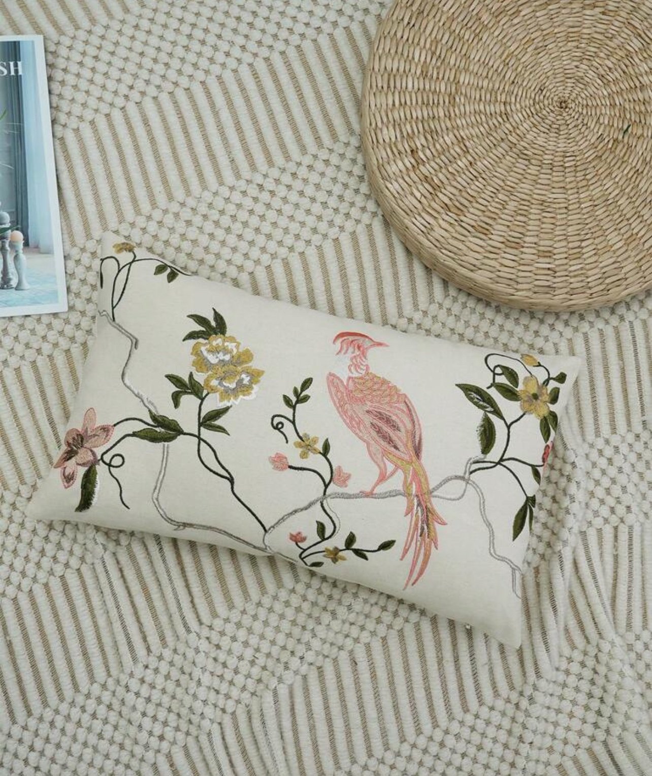 1غطاء وسادة مطرز بالزهور والطيور – 30*50