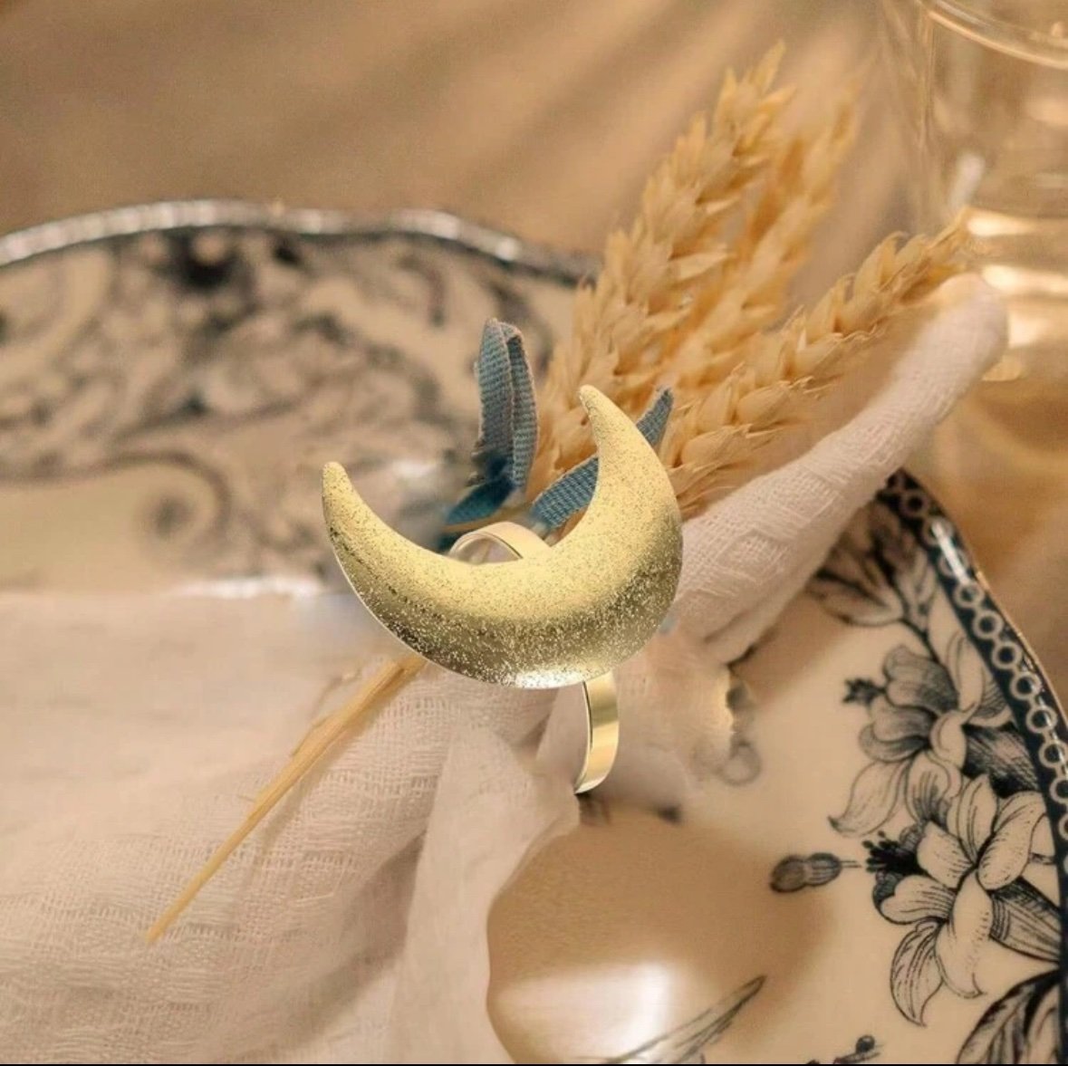 6حلقات مناديل معدنية بشكل هلال لونذهبي-فضي